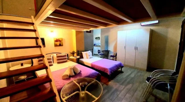 • 1/2, 1/3 i 1/4 studio – smeštajne jedinice u vili u kojima se u istom prostoru nalaze deo sa kuhinjskim elementima i osnovnim priborom za jelo za odgovarajući broj osoba (prema broju ležajeva), kreveti, orman, kupatilo i terasa. 1/4 studio može sadržati francuski ležaj (grčki standard) i krevet na sprat, dok 1/2 odnosno 1/3 studiji sadrže francuski ležaj i/ili singl ležaj (grčki standard).