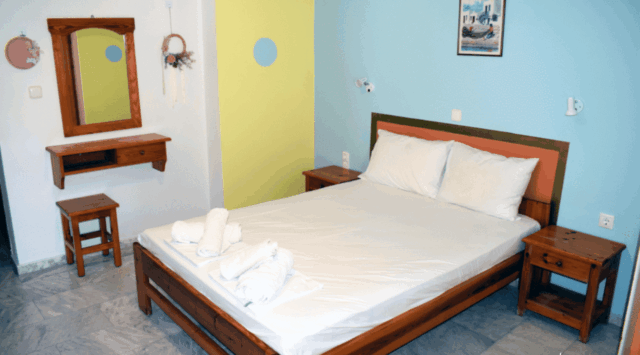 Mere ležajeva u Grčkoj se razlikuju od našeg standarda i iznose: a) ležaj za jednu osobu (d=185-190cm,š=75-90cm); b) francuski ležaj (d=185-190cm, š=120-140cm).