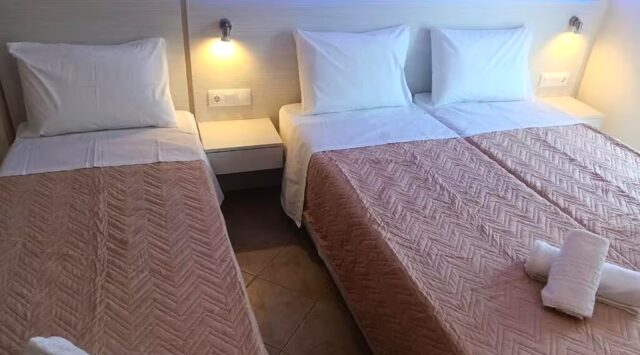 – Dimenzije ležajeva u Grčkoj se razlikuju od naših standarda. Grčki standard za normalan ležaj je 75-90 cm sa 180-200 cm, francuski ležaj 110-150 cm sa 180-200 cm. Pomoćni ležaj u svim objektima u Grčkoj je na sklapanje, drvene ili metalne konstrukcije ili fotelje na rasklapanje, manjih dimenzija.
