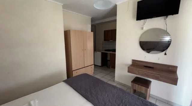 - 1/2, 1/3, 1/4 studio – smeštajna jedinica u vili u kojoj se u istom prostoru nalazi deo sa kuhinjskim elementima sa osnovnim priborom za jelo za odgovarajući broj osoba (prema broju ležajeva), kreveti, orman, kupatilo i terasa. 1/4 studio može da sadrži francuski ležaj (grčki standard) i krevet na sprat, 1/2 odnosno 1/3 studiji sadrže francuski ležaj i/ili singl ležaj (grčki standard).