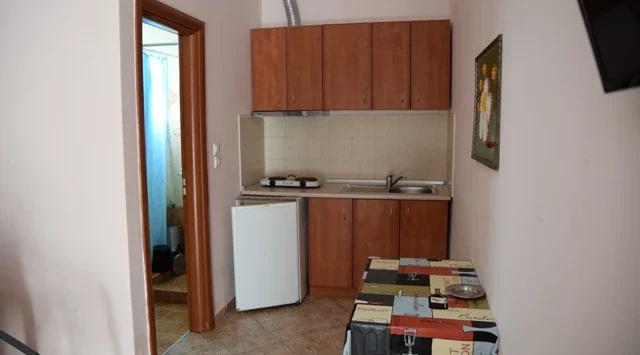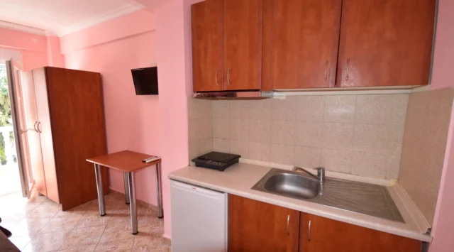 - 1/2, 1/3, 1/4 studio – smeštajna jedinica u vili u kojoj se u istom prostoru nalazi deo sa kuhinjskim elementima sa osnovnim priborom za jelo za odgovarajući broj osoba (prema broju ležajeva), kreveti, orman, kupatilo i terasa. 1/4 studio može da sadrži francuski ležaj (grčki standard) i krevet na sprat, 1/2 odnosno 1/3 studiji sadrže francuski ležaj i/ili singl ležaj (grčki standard).